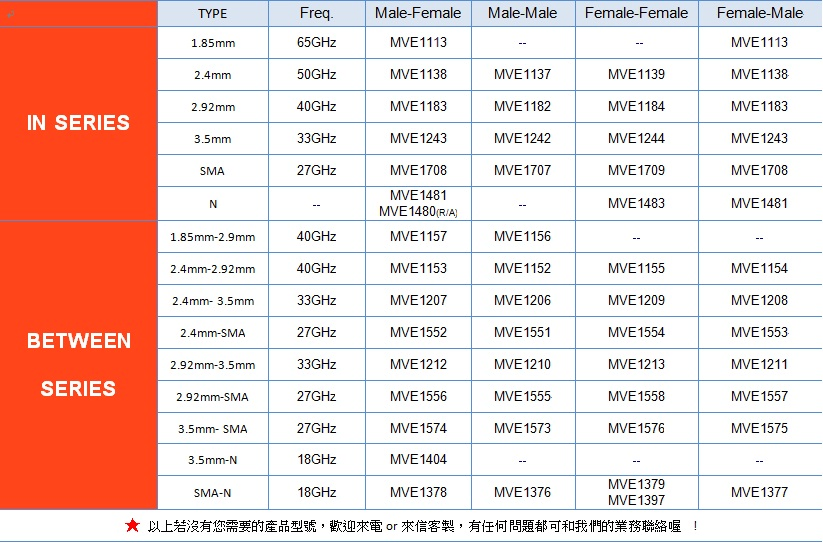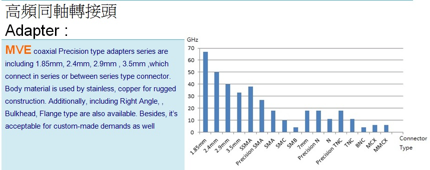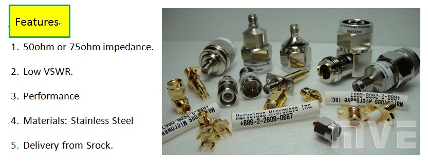 MVE為了滿足客戶測試的需求,推出了多種同軸接頭 / 同軸轉接頭的產品。